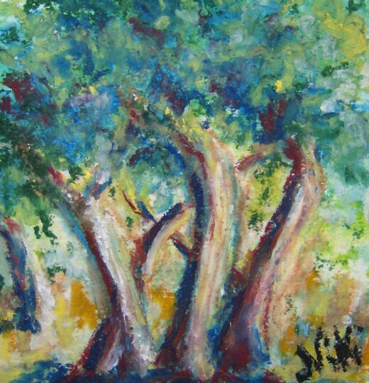 Exhausted, bleary-eyed, and desperate to paint something, no matter how small, I pulled the box of wax pastels out again one evening a few months ago to give them another try. I'd been teaching so much in a variety of media, I figured I should be able to get something out of them if I kept the painting simple.